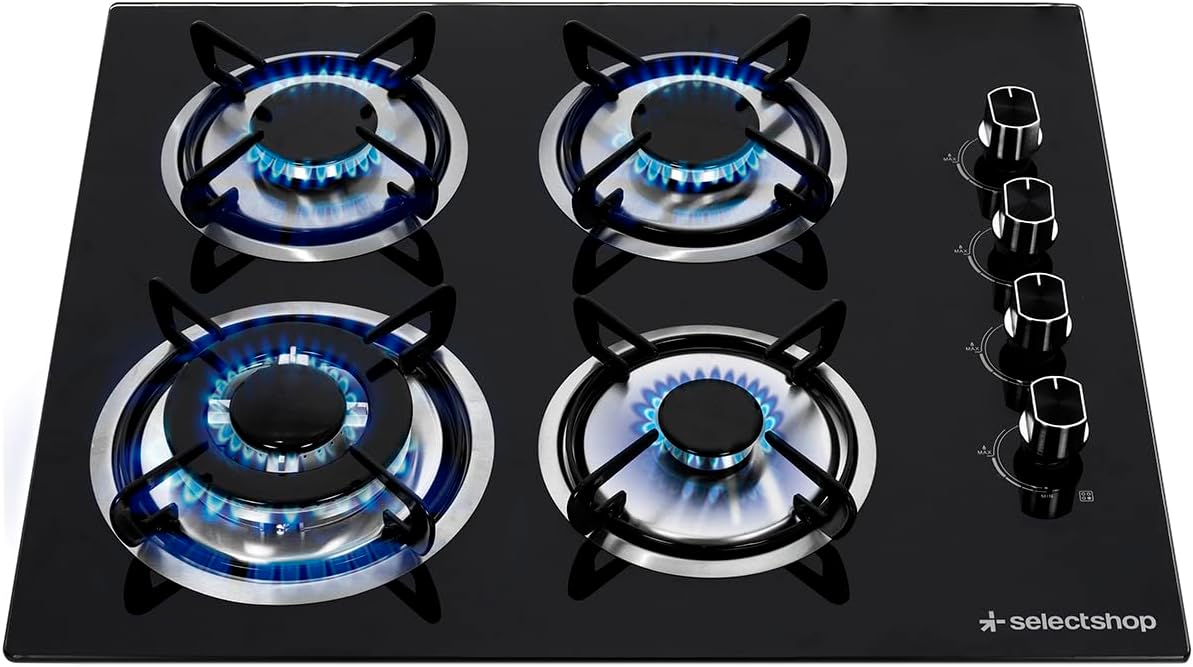 SELECTSHOP Parrilla De Gas 4 Quemadores De Acero Inoxidable Estufa Compatible Con Gas LP Empotrable o De Sobreponer Encendido Electronico Parrilla Electrica De Estructura Metalica (4 Quemadores)