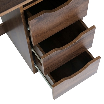El escritorio Baal Walnut Home Make es ideal para trabajar o estudiar en casa gracias a su diseño clásico y capacidad de soporte de 50 kg. Fabricado en tablero de fibra de densidad media resistente al agua, posee una repisa abierta y 3 cajones laterales con guías de extensión para una extracción suave. Sus medidas son 75 x 110 x 50 cm y su color café nogal combina con cualquier tipo de decoración.
