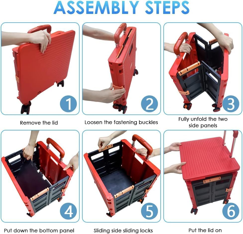- 【Mango telescópico ajustable y tapa magnética】Diseñamos un mango telescópico ajustable de 3 niveles para nuestro carrito de mano duradero y tapa deslizante magnética extensible que te permiten transportar más diferentes tipos de artículos como libros, archivos, suministros de aula, lavandería o suministros de arte para viajes, compras, picnic o mudanzas, etc.