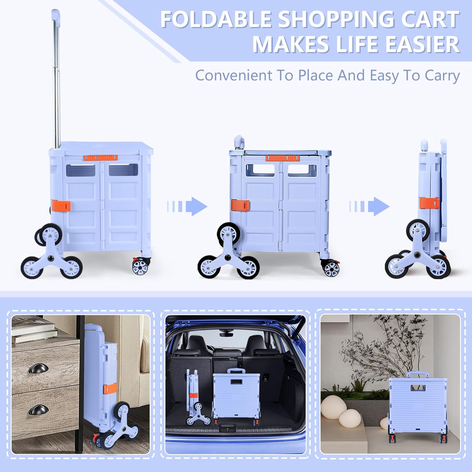 - 【Instala y pliega con facilidad】El diseño portátil hace que el carrito sea fácil de plegar y montar en cuestión de segundos, doblado con un pestillo para mantenerlo cerrado. Mejor más, se puede plegar a 15 x 3 x 20 pulgadas. y peso ligero (9 libras). Simplemente guárdelo en el maletero, cochera, clóset, clóset o cualquier rincón de tu hogar.